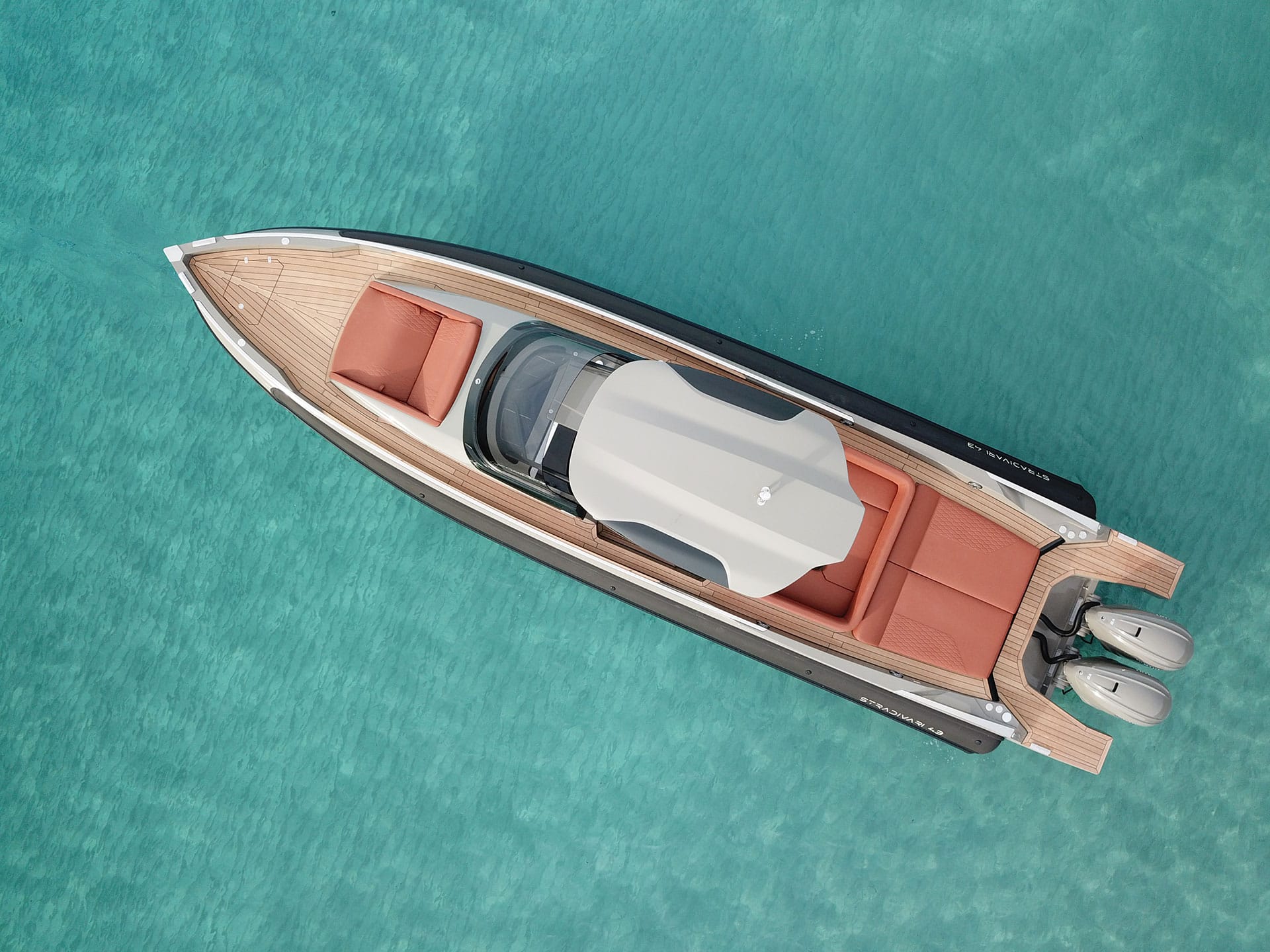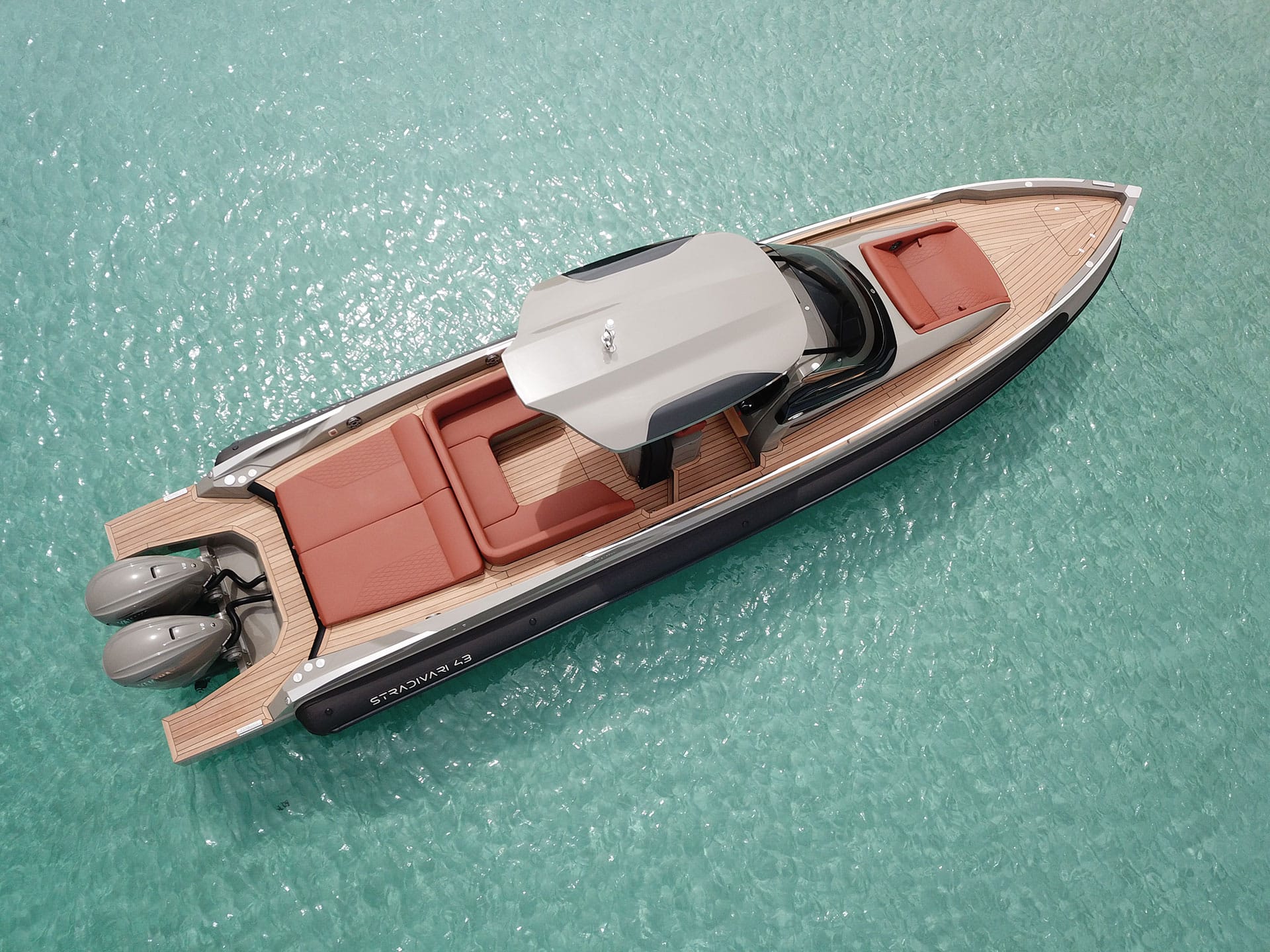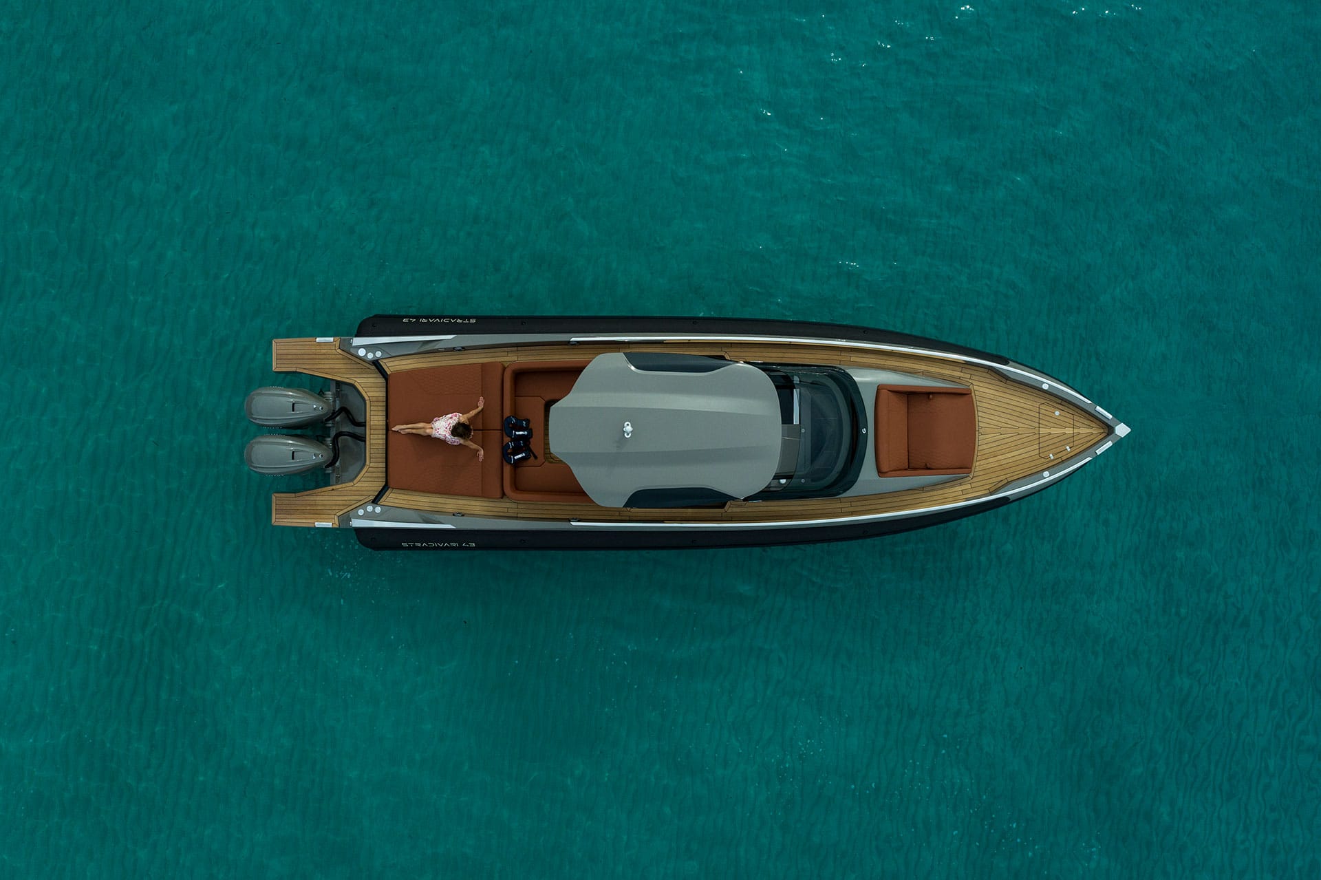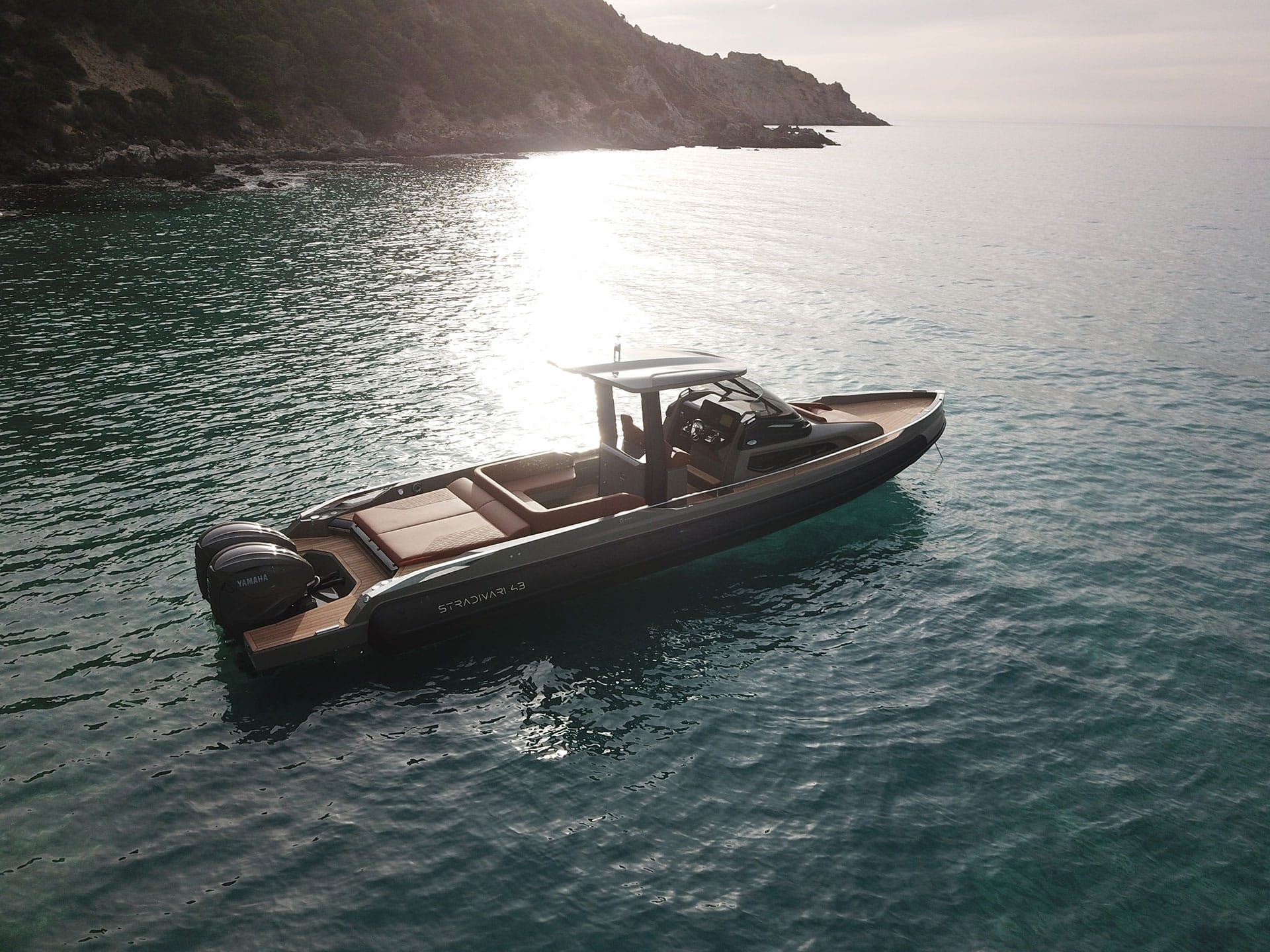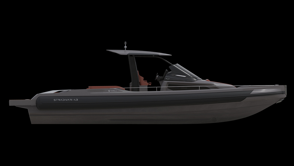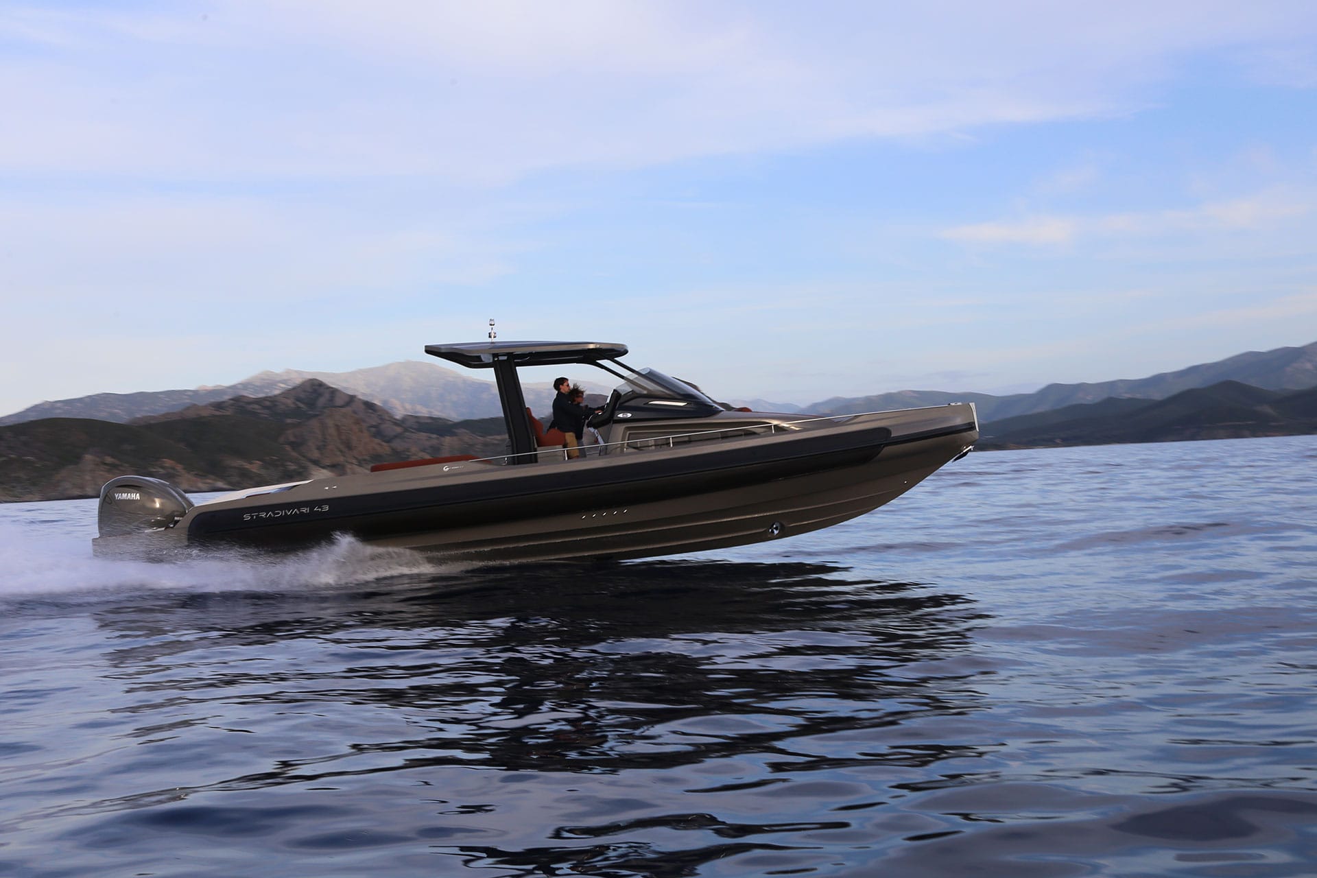 Stradivari 43 è il risultato di uno studio meticoloso delle forme sinuose e morbide del violino e di un lavoro di astrazione che ha permesso di arrivare ad un concept che potesse integrarsi con le esigenze tecniche del battello stesso. Artigianalità, innovazione stilistica, alto livello di progettazione e industrializzazione, meticolosa attenzione per i dettagli e le finiture, sono i punti cardine di questo prodotto.
