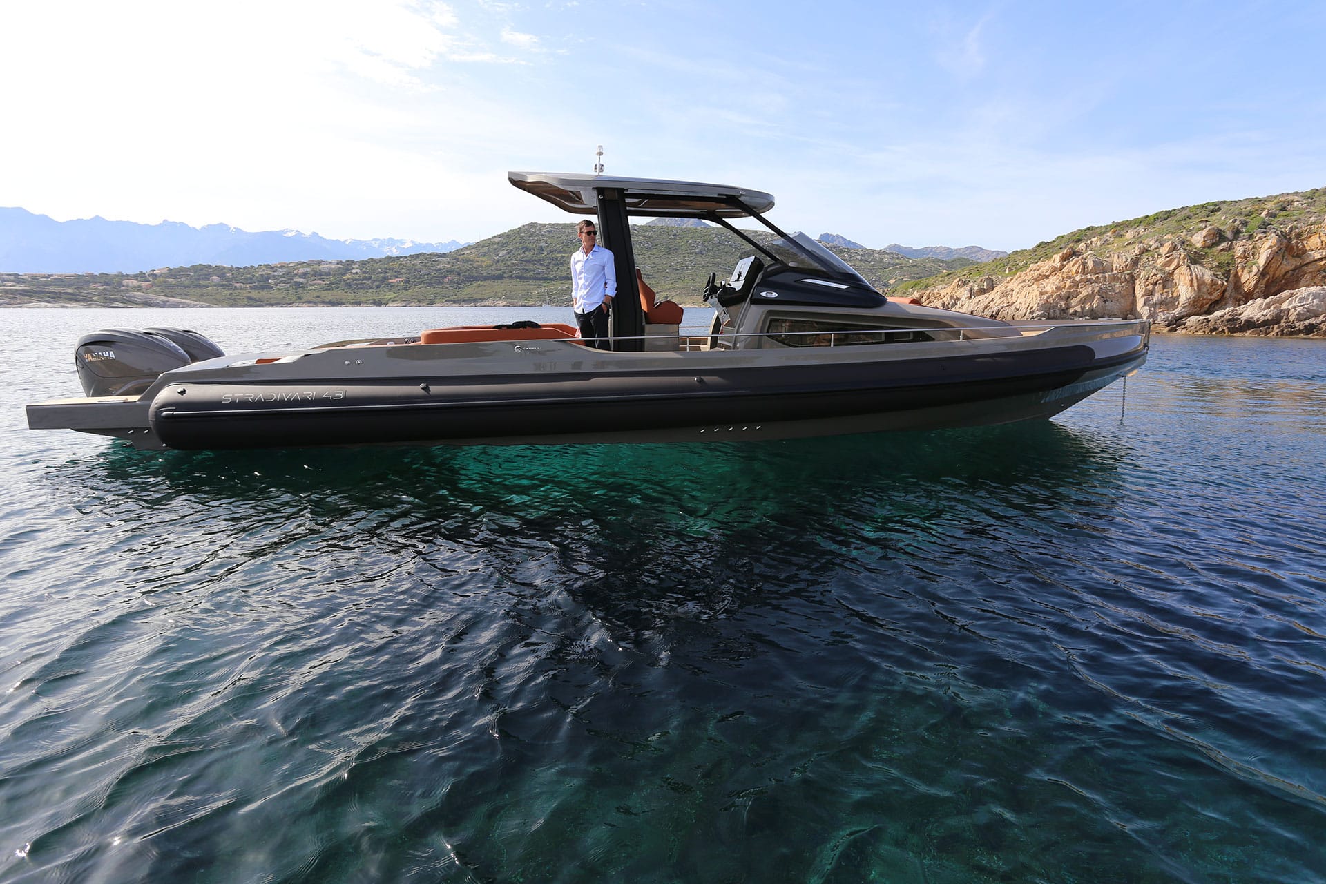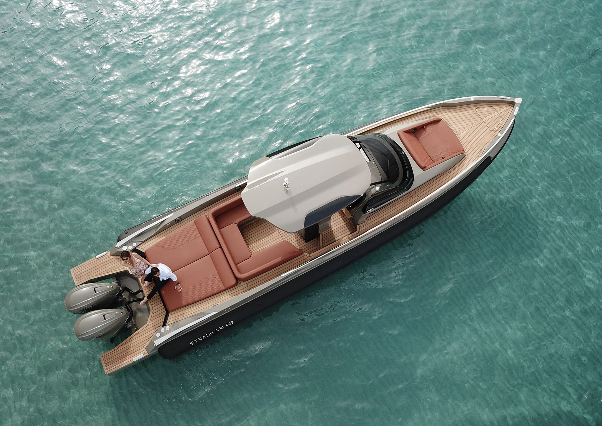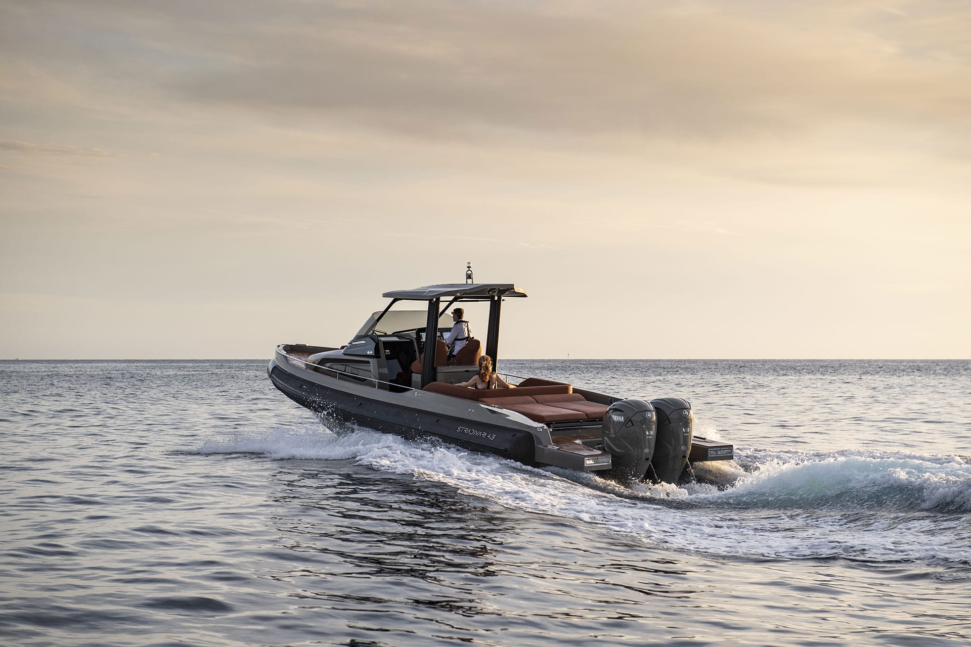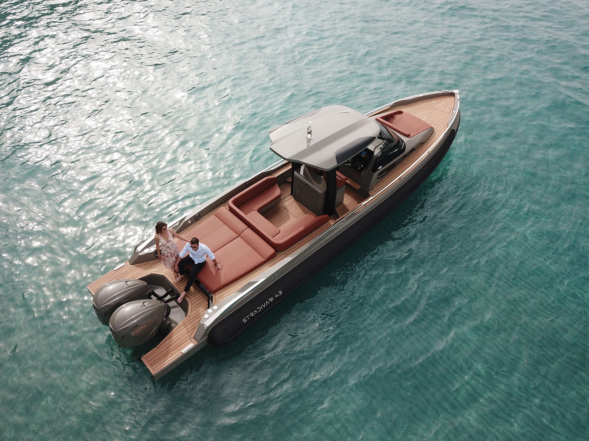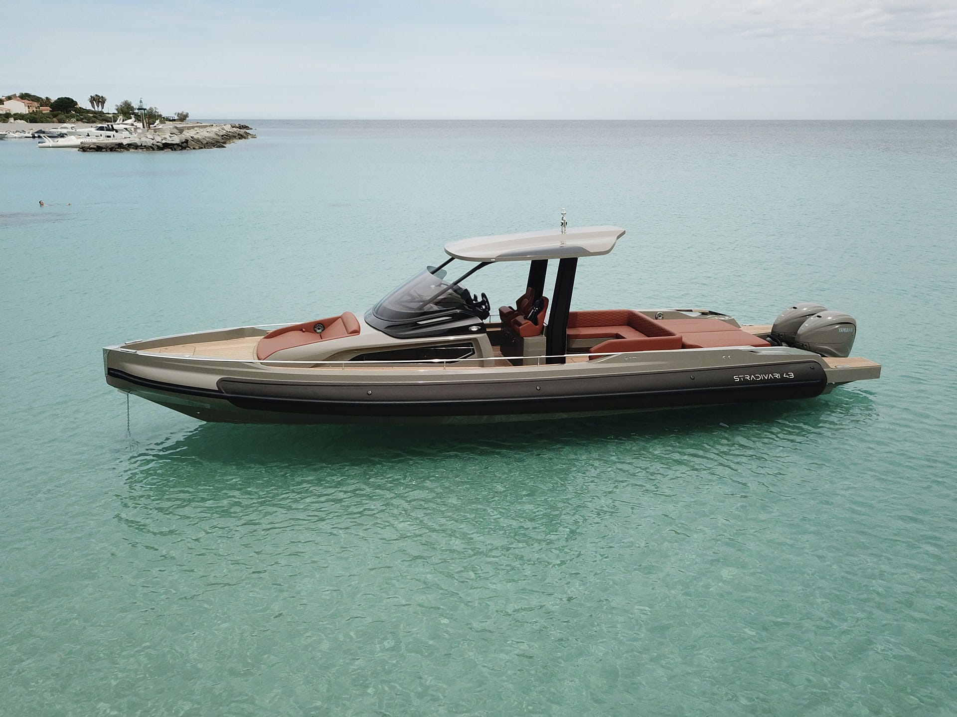 Stradivari 43 è il risultato di uno studio meticoloso delle forme sinuose e morbide del violino e di un lavoro di astrazione che ha permesso di arrivare ad un concept che potesse integrarsi con le esigenze tecniche del battello stesso. Artigianalità, innovazione stilistica, alto livello di progettazione e industrializzazione, meticolosa attenzione per i dettagli e le finiture, sono i punti cardine di questo prodotto.