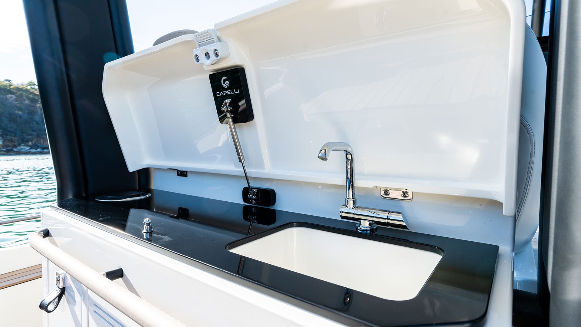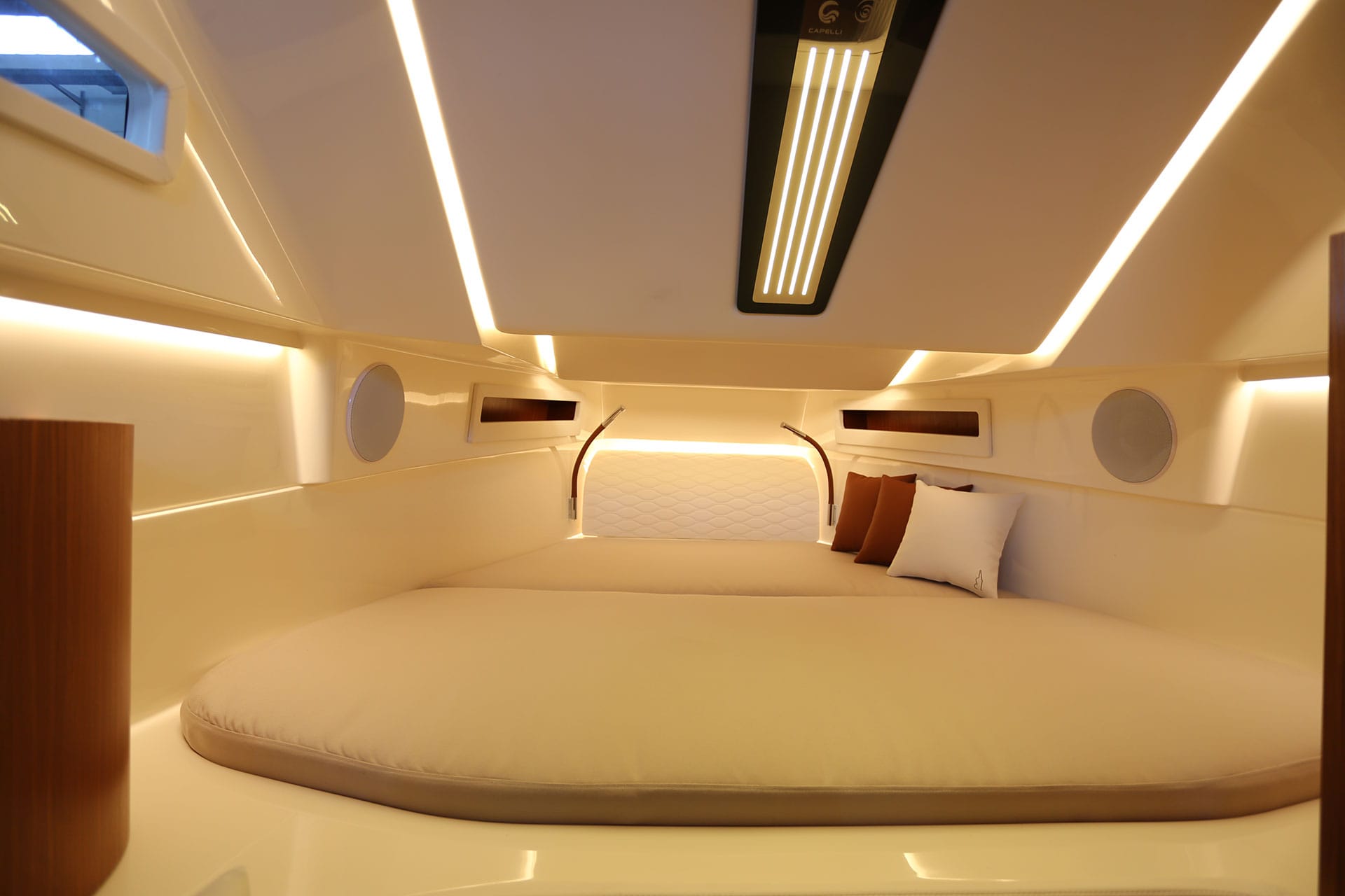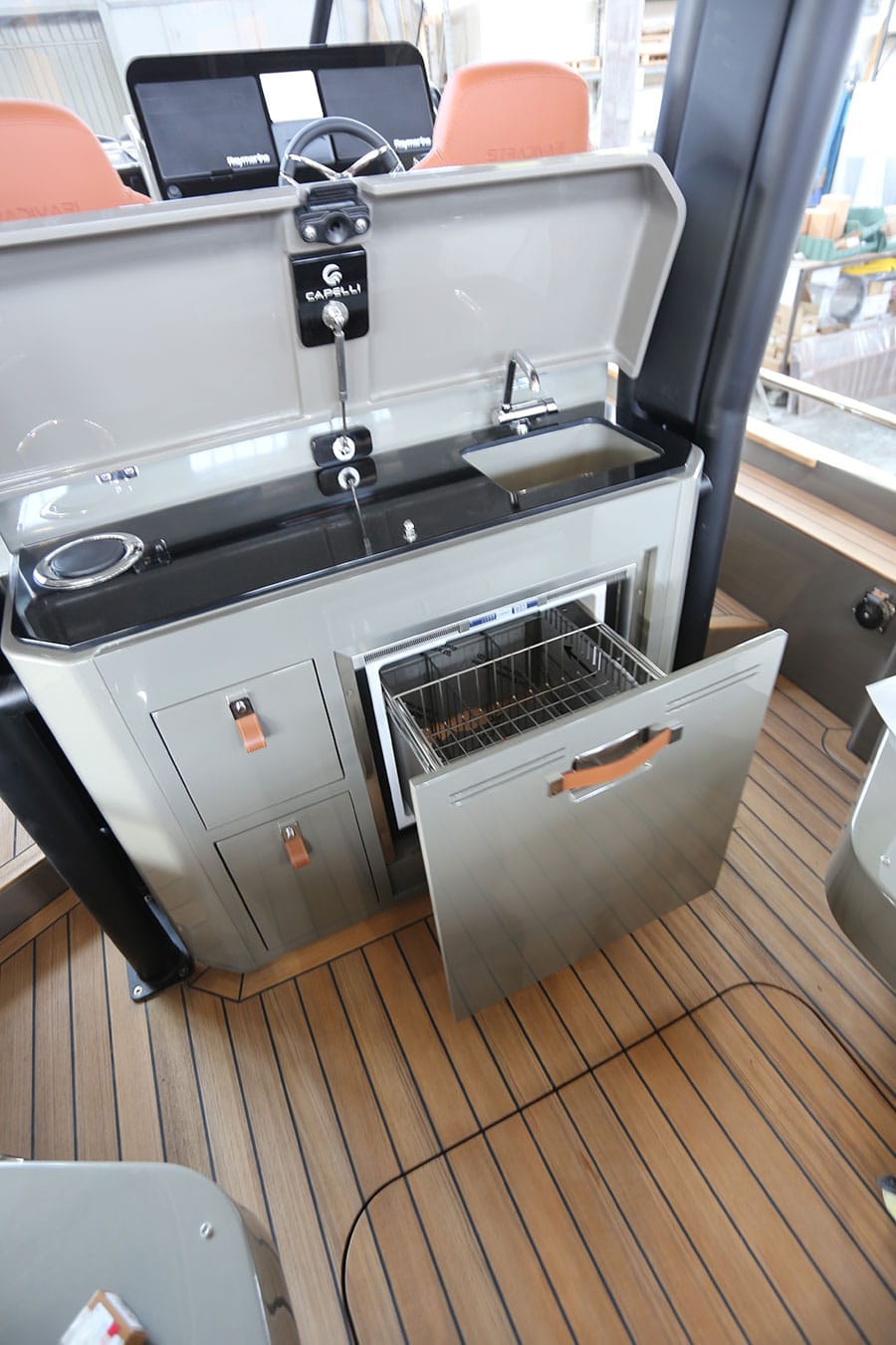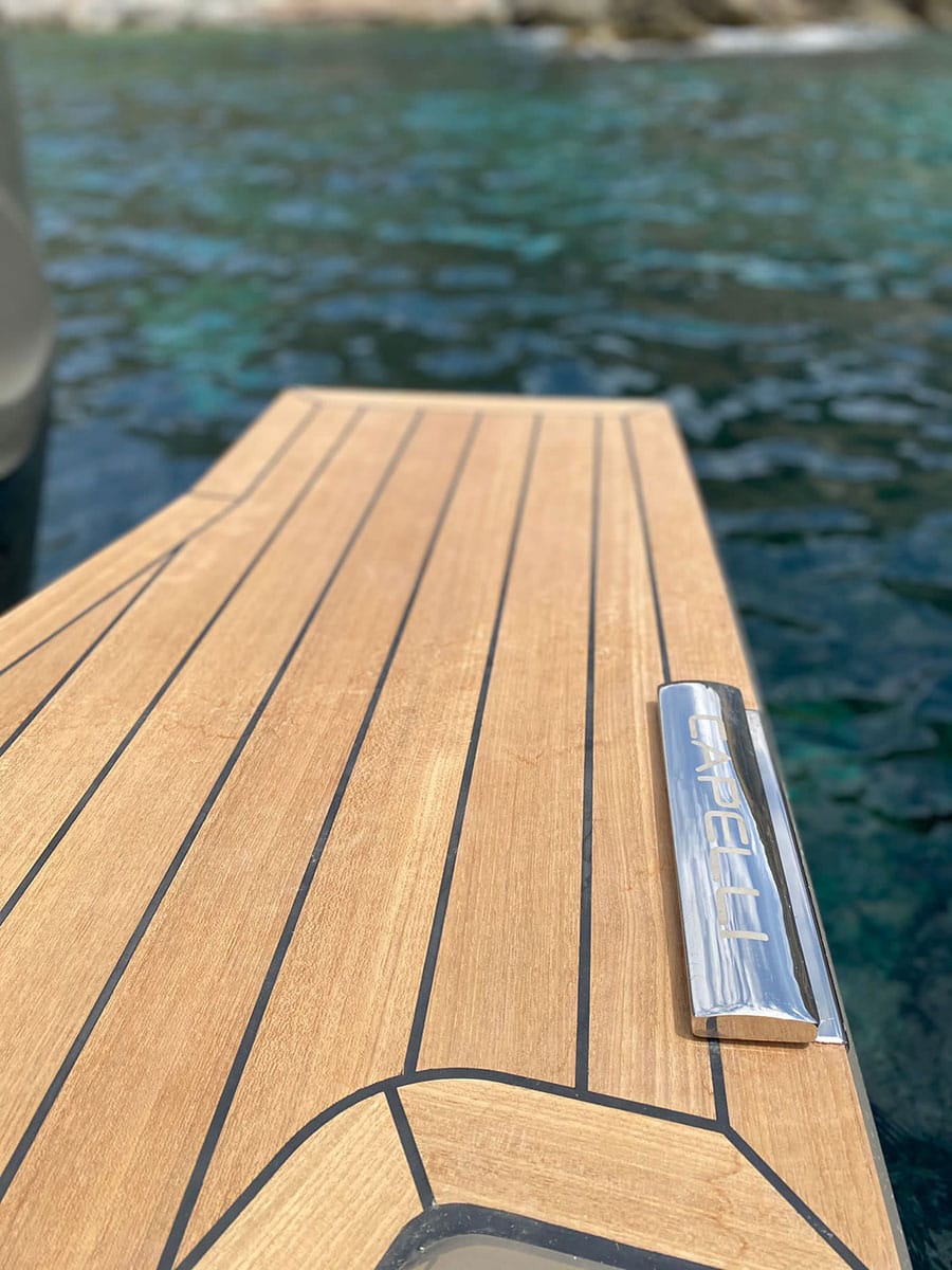 Tutte le caratteristiche relative all’intera gamma non sono vincolanti, Cantieri Capelli si riserva il diritto di modificarle senza preavviso. Le imbarcazioni raffigurate possono essere equipaggiate con accessori optional.